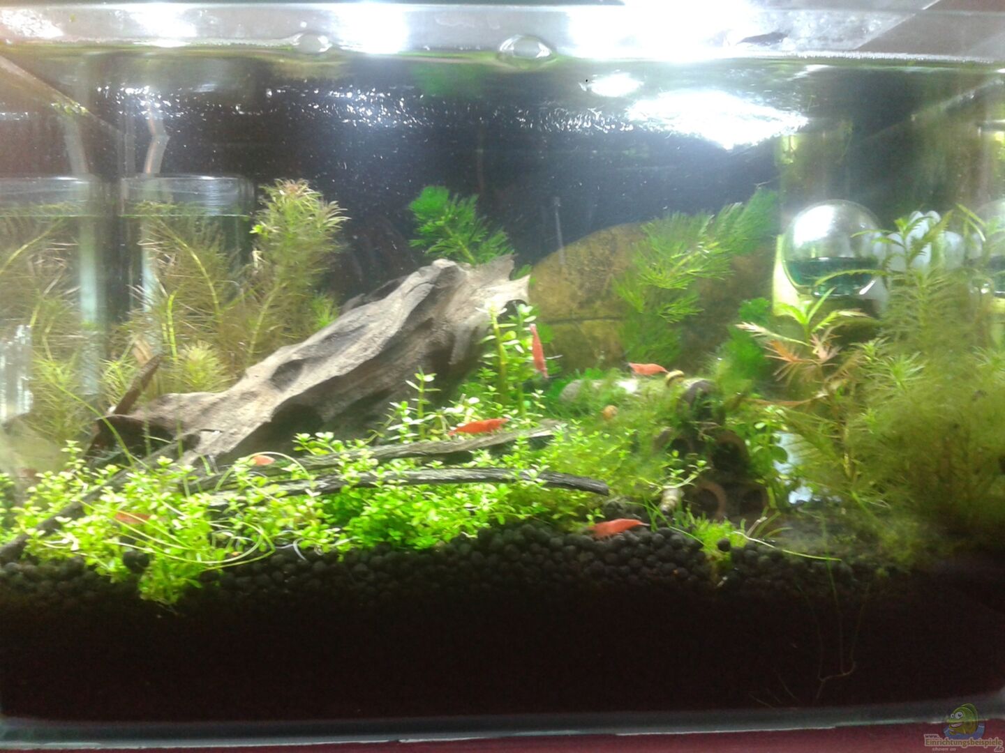 Selektionsbecken für 2 Zuchtbecken selber Grö??e. Alle sind ein wenig im Aquascaping-Stil angelegt und sind durch den starken Pflanzenwuchs passend für die Bedürfnisse der Garnelen eingerichtet. Rückscheibe ist für mehr Tiefenwirkung mit schwarzer Folie beklebt.
