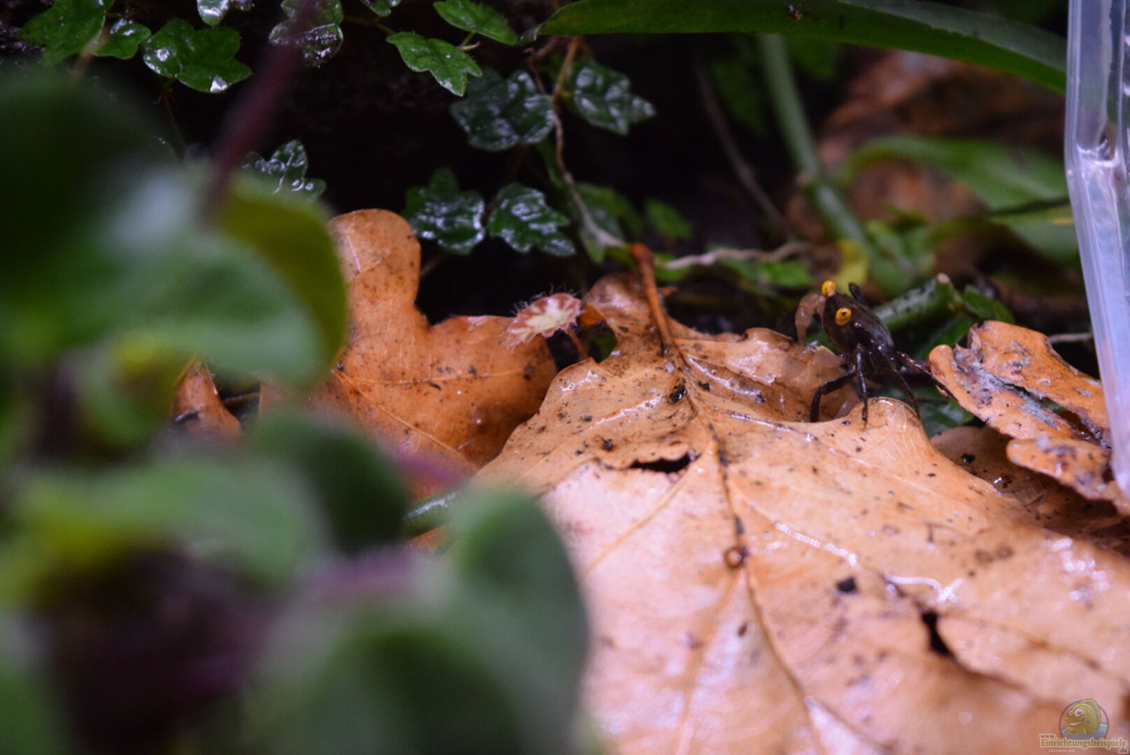 Das Becken ist Lebensraum für ein Pärchen Geosesarma Red Devil. Leider ist das Weibchen verstorben. Das Männchen ist auch schon mind. 2 Jahre alt. Als nächstes Tier möchte ich mir Melanophryniscus klappenbachi, das Schwarzkrötchen zulegen, da ich dafür, denke ich, das ideale Habitat habe. Die Würfel sind gefallen. Heute 20.04.2016 Neueinzug von Geosearma Golden Eye, 1 Männchen, 2 Weibchen;