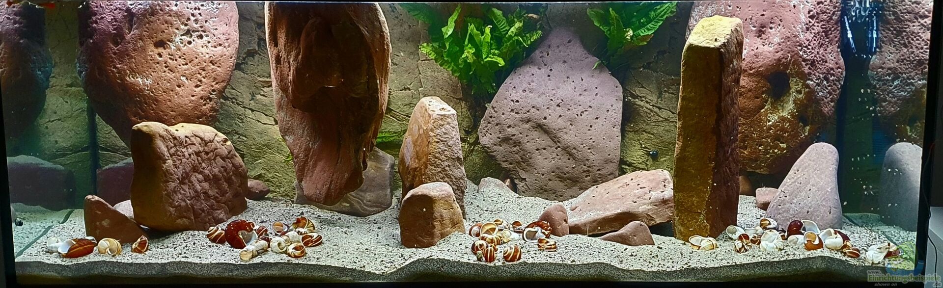 Standardbecken der Firma Aquarienkontor aus Haltern am See - Glasstärke 12 mm, Front- und Seitenscheiben aus Wei??glas - Unterbau aus Aluminiumprofilen mit Scherwänden aus 15mm starken Siebdruckplatten - Eingeklebte Back to nature Slimline Red Gneis Rückwand. Ziel des Projekts war es, steile Felswände (Rückwand und hängende Felsmodule) als Lebensraum für Cyprichromis sowie eine durch stehende Felsen gut gegliederte (Reviergrenzen), sandreiche ??bergangszone nachzubilden, in der sich [...]