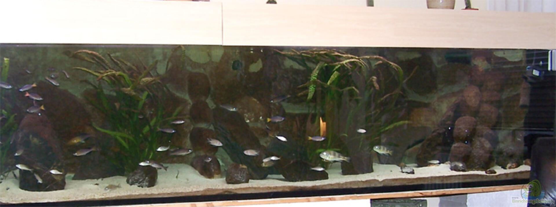 Becken ist schwarz rund verklebt. Front-, Rück- und Seitenscheiben 12mm Glas, Bodenscheiben 15mm. Da das Becken bei der recht gro??en Länge eine durchgehende Bodenscheibe hat, sind hierauf vorne und hinten je eine Querstrebe mit ca. 10cm Breite und Dehnungsfugen zu den Anschlu??scheiben angebracht. Oben befinden sich 2 Längs- und 3 Querstreben. Der Unterbau ist eine Eigenkonstruktion. Auf dem Fu??boden liegen der Länge nach jeweils vorne und hinten ein Stahlträger, auf welchem sich vier [...]