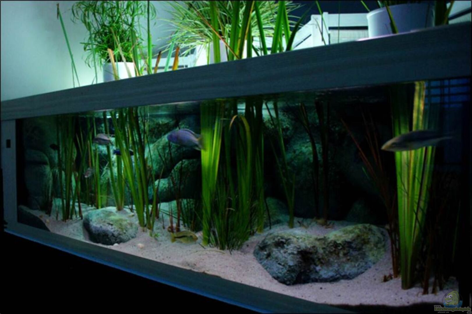 Räuber in der vegetativen Uferzone Dieses Becken ist ein Biotop-Aquarium, welches die vegetative Uferzone des Malawisees mit Röhricht und den dort lebenden Cichliden, wiedergibt. Die Besonderheit dieses Beckens ist, das bewusst versucht wurde, nicht nur strukturell sondern auch in Bezug auf die Flora, einer typischen Ufer- und Sumpfumgebung zu entsprechen. Mittels emers gedeihenden Pflanzen wie Schilf respektive Rohrkolben und einer afrikanischen Schwertlilien-Art werden die klassischen Grenzen [...]