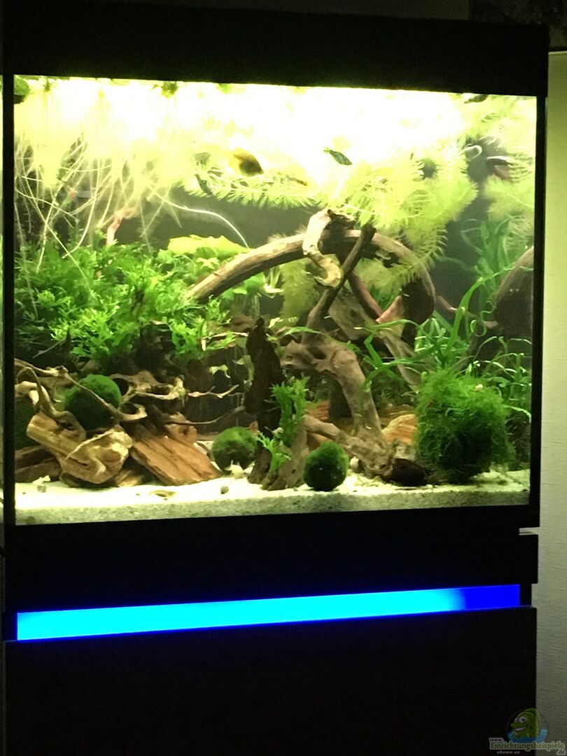 Das Becken hat einen Schacht im hinteren, linken Bereich in dem alle Kabel und Leitungen hinunter in dem Unterschrank verlegt werden.Der Unterschrank verfügt über eine indirekte LED-Beleuchtung mit der man die verschiedensten Lichtszenarien einstellen kann.Dazu gehört noch eine Fernbedienung mit dieser man die LED-Beleuchtung steuern und dimmen kann.