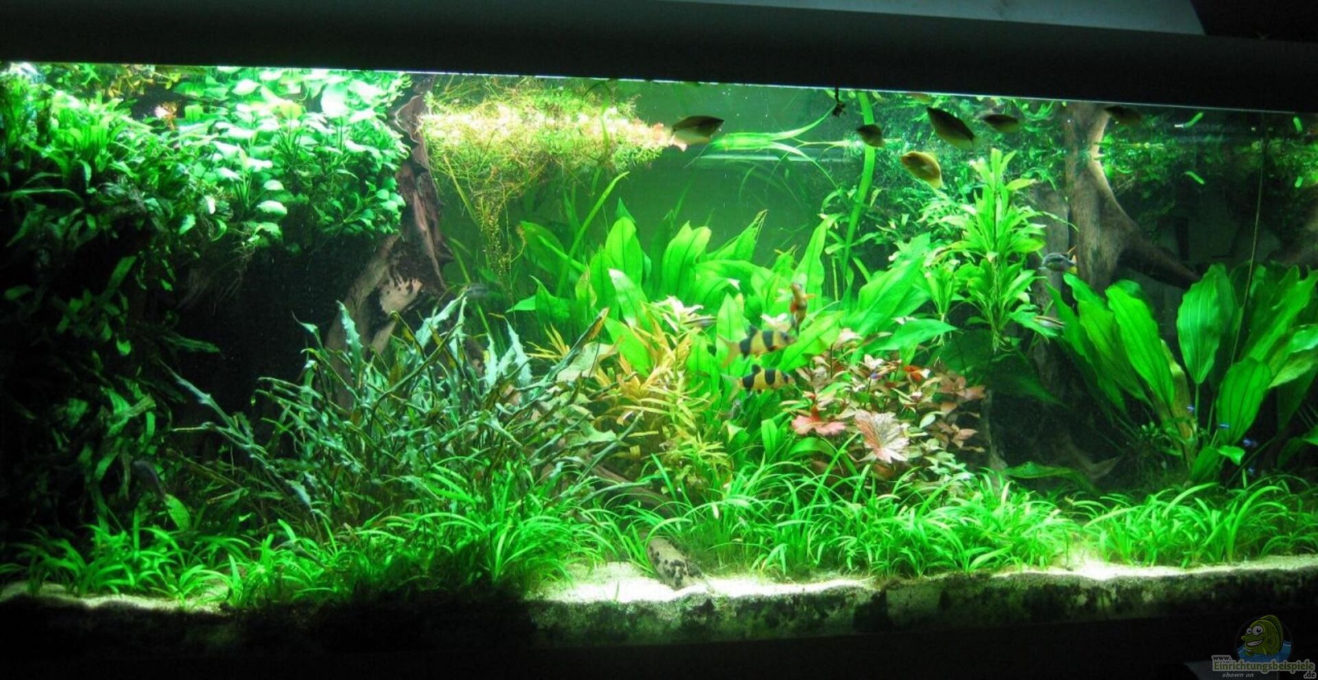 Glasdicke 12mm. Das Becken hat keine Bohrungen, sondern links vom Becken sind 10% (20cm, ca.100 Liter) für einen gro??en Biofilter abgetrennt, so dass das Wasser nur innerhalb des Beckens von links nach rechts gepumpt wird. Das Becken stammt inkl. Abdeckung und Leuchtbalken von Klaus Ruffert und seinem Team "Diamantaquarien".