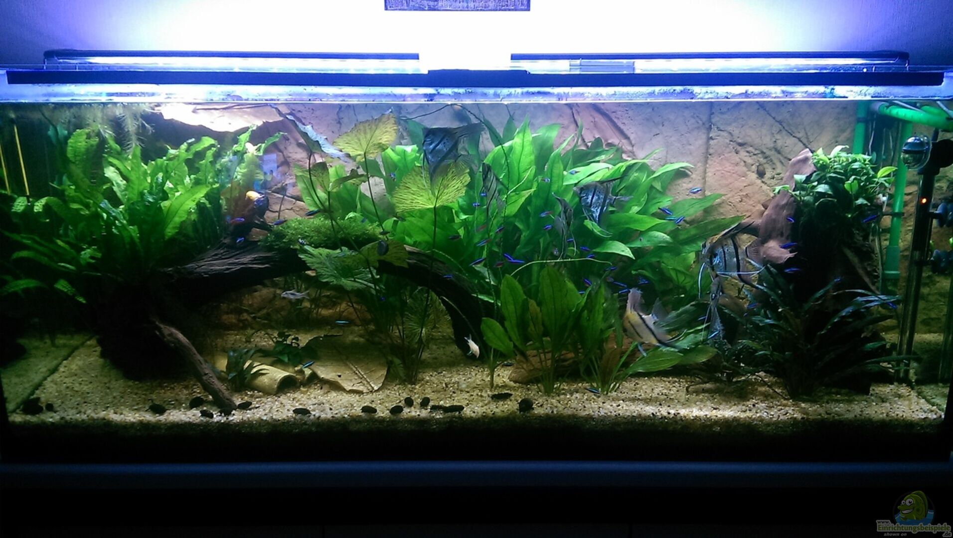 Der Unterschrank ist ein Eigenbau des Erstbesitzers aus Kanthölzern, einer Küchenarbeitsplatte und einer Aquarienunterlage von JBL. Die drei Türen die die Technik und viele Utensilien verbergen sind aus Sperrholz, mit handesüblichen Möbelgriffen aus Alu und werden mit Magneten an den Kanthölzern gesichert.Hier hat sich der Erbauer richtig Gedanken gemacht, vielen Dank.