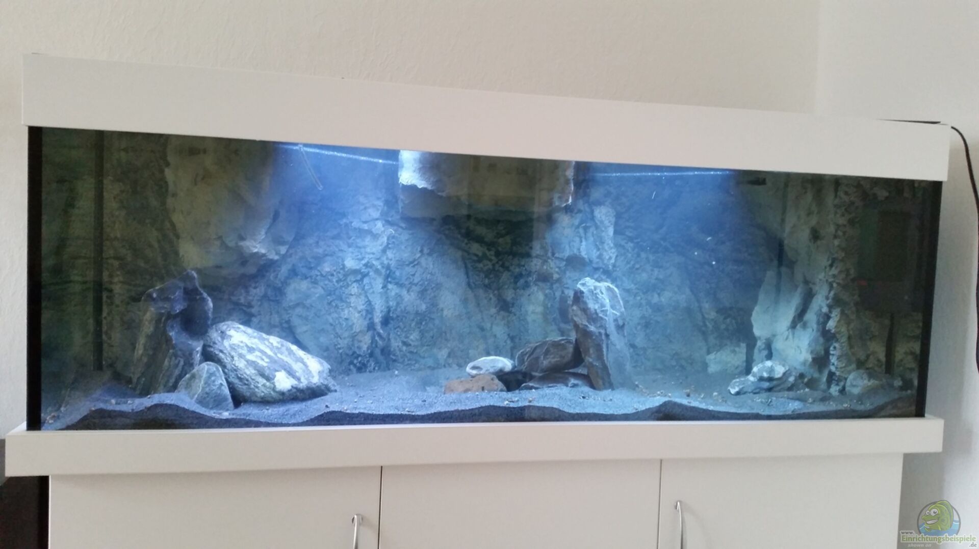 Standardbecken von Friedeberg Aquarienbau. Der Unterschrank, die Kiesblende und die Abdeckung sind in Perlwei??-Dekor gehalten.