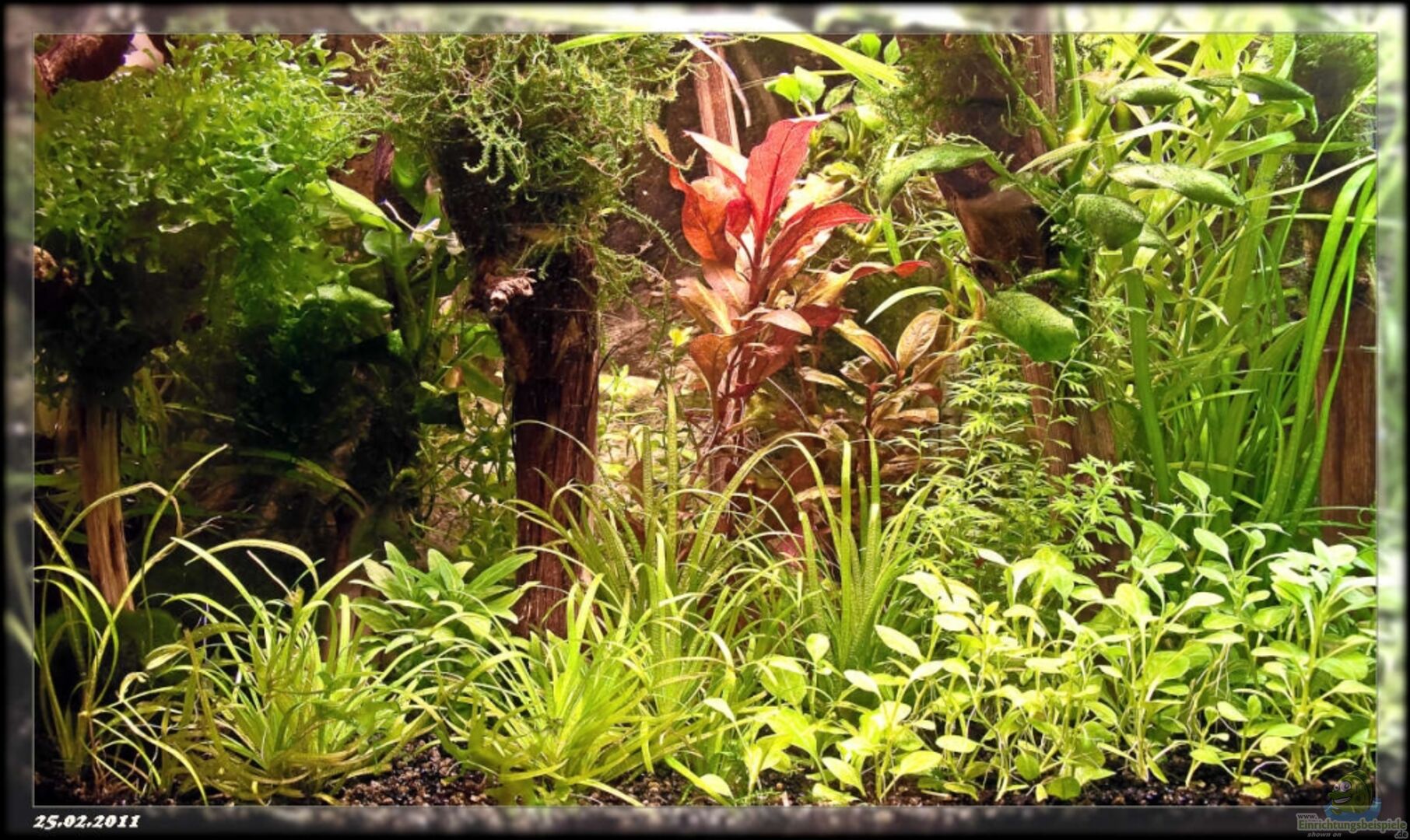 Es handelt sich hier um ein Standrdbecken mit gewölbter Front, gefertigt aus 4 mm Glas, verklebt mit schwarzem Silikon. In das Becken habe ich eine 3D-Rückwand in Stein/Wurzel-Optik eingeklebt, deren Tiefe im Becken beträgt 2 - 8 cm. Im oberen Bereich der Rückwand wurde eine kleine Pumpe eingeklebt, da der Raum hinter der Wand als Filter genutzt wird. Deshalb wurde die Rückwand einseitig mit Silikon verklebt, steht unten auf 2 Silikonstützen und ist oben an einer Stelle links fixiert. Links [...]