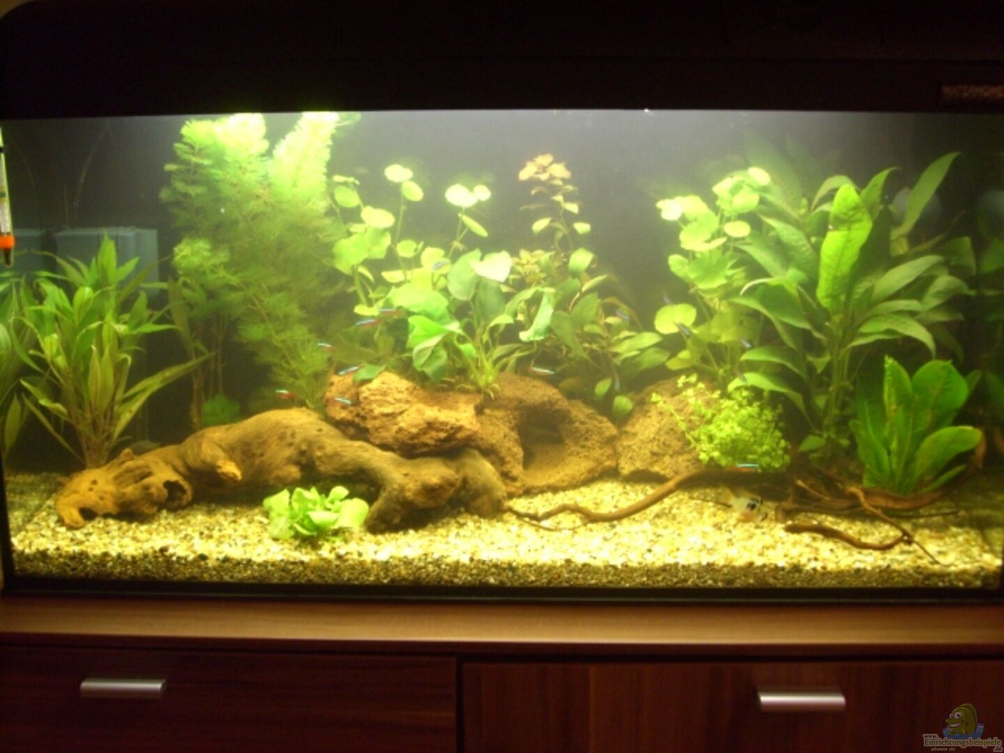 Elite Aquarium-Set 80 6 mm Glas und schwarzer Abdeckung mit Beleuchtung und Futterklappe Aquarium steht auf einer Schaumstoff-Sicherheitsunterlage 80 x 35 cm für Aquarien auf einem Unterschrank Farbe Nussbaum im Wohnzimmer