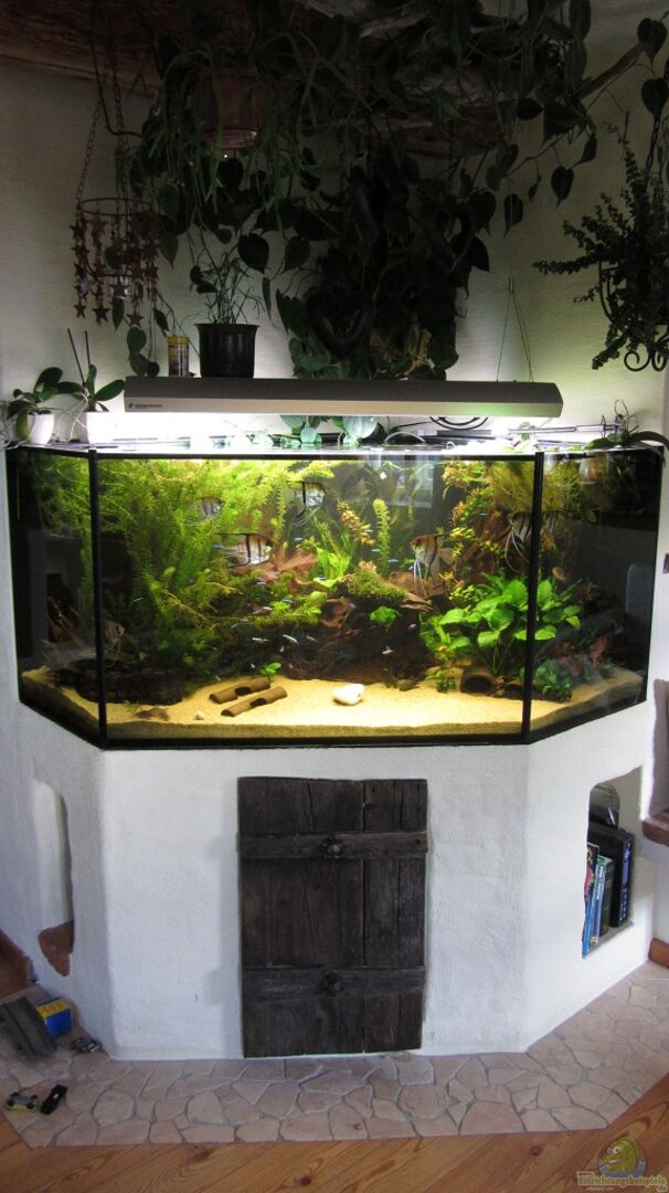 Offenes Eckaquarium ca. 550 liter Unterbau selbst gemauert Aquarium ist eine Sonderanfertigung (Baujahr-2010) Wulstverklebt Rüchwand:schwarze Folie Ich freue mich über Ratschläge, Ideen und Kritiken...
