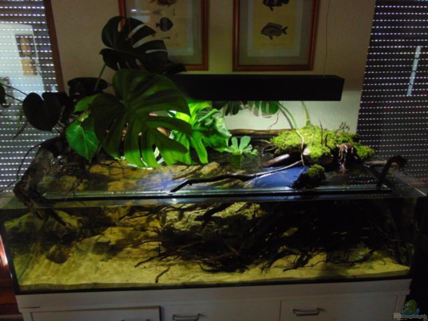 Planung: Hi, geplant ist die Nachahmung eines Bachlaufs mit bepflanzter Uferzone. Das Becken wird deshalb offen betrieben, Pflanzen sollen ins Wasser wurzeln. Mit Moorkienwurzeln sollen Unterstände entstehen.