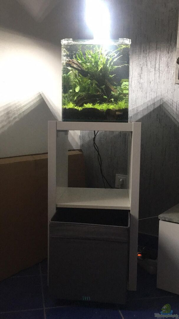 Dennerle Nano Cube 30L LED auf Ikea Kallax (verstärkt mit 4 Edelstahl Winkel)