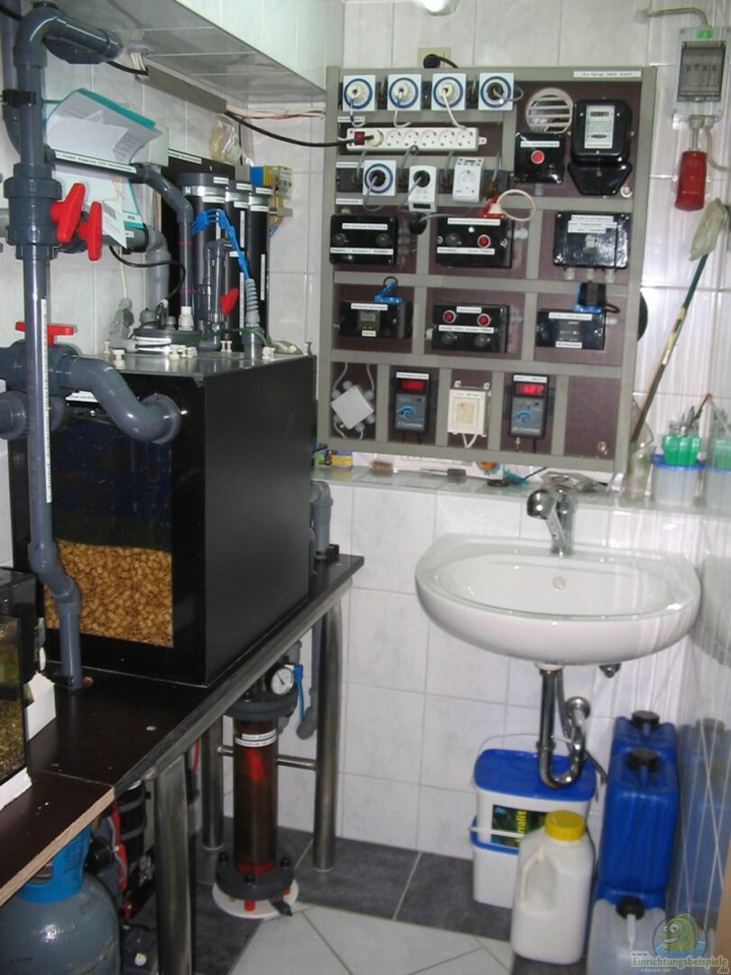 PH Mess- und Regelgerät von Aquamedic mit Eigenbau Co² Reaktor mit 4 l Volumen Temperatur Mess- und Regelgerät von Aquamedic ( Boden- und Stabheizung) Sonneauf- und Unterganssteuerung 3 Fach Dosierpumpe von Fischer UV- Reaktor 9 Watt Autom. Wasserwechsel über Magnetventil. ca. 25 l pro Tag Beleuchtungscomputer von Ecotronic