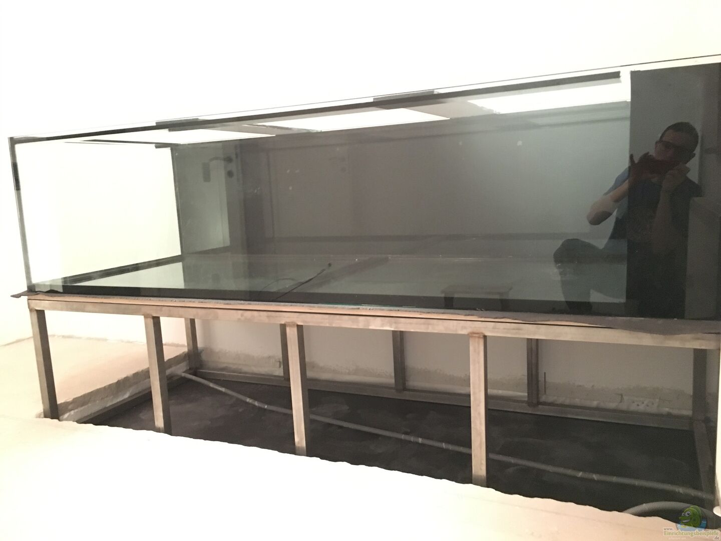 - Unterschrank selbst gebaut aus 40x40 mm Nierosterstahl - Aufbau : Fallschutzmatte - Siebdruckplatte 21mm - Unterschrank - Dachfolie - Siebdruckplatte 21mm - Aquariumunterlagsmatte - Becken - Bohrung im Boden für Wasserwechsel - Mehrkammerinnenfilter mit 4 Kammern über die ganze Tiefe - Becken wurde genau nach meinen Wünschen angefertigt und bis vors Haus geliefert > mit 6 Mann und meiner Ehefrau kam Becken schlie??lich durchs Fenster in den richtigen Raum