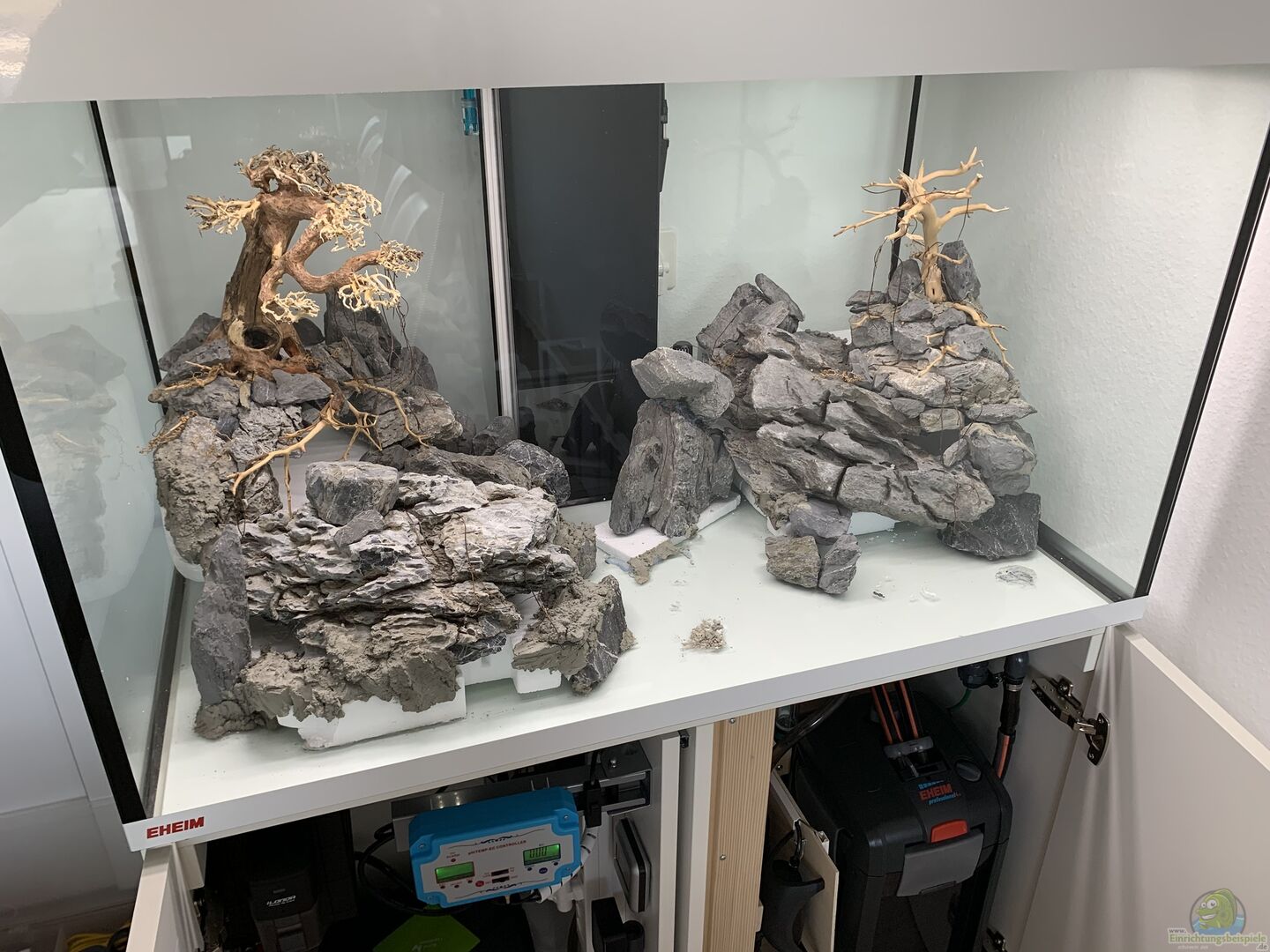 ??? Mini Landschaft: - Seiryu Rock in verschiedenen Grössen und Formen - Beide Hügel dienen als Rückzugsmöglichkeiten in Form von Höhlen - Gewicht der verwendeten Steine ca. 100kg/120kg - Steine ausgewaschen und sauber gereinigt - Unterlegt mit Styropor Nach der Reinigung der Steine bildete ein Grundgerüst aus Styropor eine dämpfende Basis, welche zukünftig die Last der Landschaft tragen soll. ??? Bonsai in zwei verschiedenen Grössen: - Grösse: L - Grösse: [...]