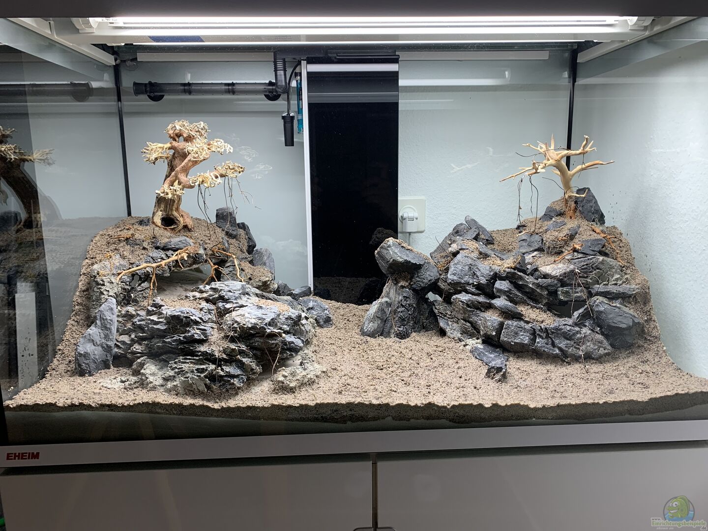 ??? Mini Landschaft: - Seiryu Rock in verschiedenen Grössen und Formen - Beide Hügel dienen als Rückzugsmöglichkeiten in Form von Höhlen - Gewicht der verwendeten Steine ca. 100kg/120kg - Steine ausgewaschen und sauber gereinigt - Unterlegt mit Styropor Nach der Reinigung der Steine bildete ein Grundgerüst aus Styropor eine dämpfende Basis, welche zukünftig die Last der Landschaft tragen soll. ??? Bonsai in zwei verschiedenen Grössen: - Grösse: L - Grösse: [...]