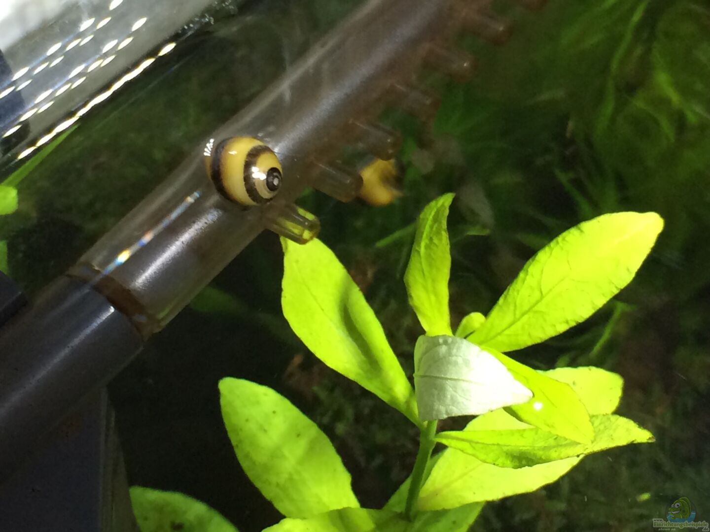 4x Geweihschnecke gelb/schwarz Für Geweihschnecken hab ich mich entschieden weil sie das Aquarium auch an schwierigen Stellen sauber halten. Schön klein und eine gute Konterfarbe zu Grün. Fahren unter Moos rum. Man kann den Schnecken beim Wachsen zusehen. Das Reinigen der Scheibe erübrigt sich vollständig. -