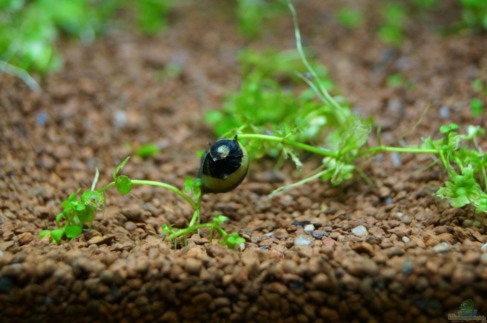 nach 6 Wochen Einlaufphase: - 10 Geweihschnecke gelb-schwarz gestreift / Clithon spec. - ca. 30 Garnelen Red Fire / Neocaridina davidi var. red - x Turmdeckelschnecken geplant ist noch ein kleiner Schwarm (10 Tiere) Moskitobärblinge / Boraras brigittae oder Perlhuhnbärblinge / Danio margaritatus