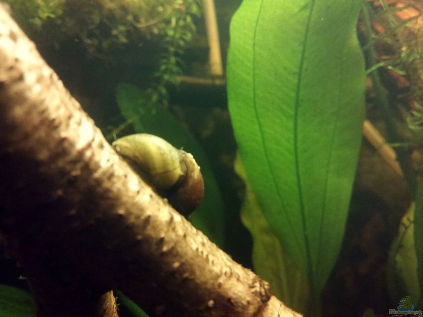 Es sollten Tiere sein, die sich zum Einen in einem Schwarzwasser-Becken mit Zimmertemperatur wohlfühlen, als auch meine schon vorhandenen Armanos und Perlhühner aufnehmen kann. Alle Tiere sind in etwa gleich gro?? und sind für ein friedliches Wesen bekannt. Daher folgender Besatz: 25 Neonsalmer, 8 Perlhunbärblinge (eigene Nachkommen), 4 Armanogarnelen aus meinem Garnelenbecken, Posthornschnecken, Geweihschnecken. Nach 2 Monaten Laufzeit des Beckens habe ich nun auch 6 Ohrgitterharnischwelse dazugesetzt. [...]