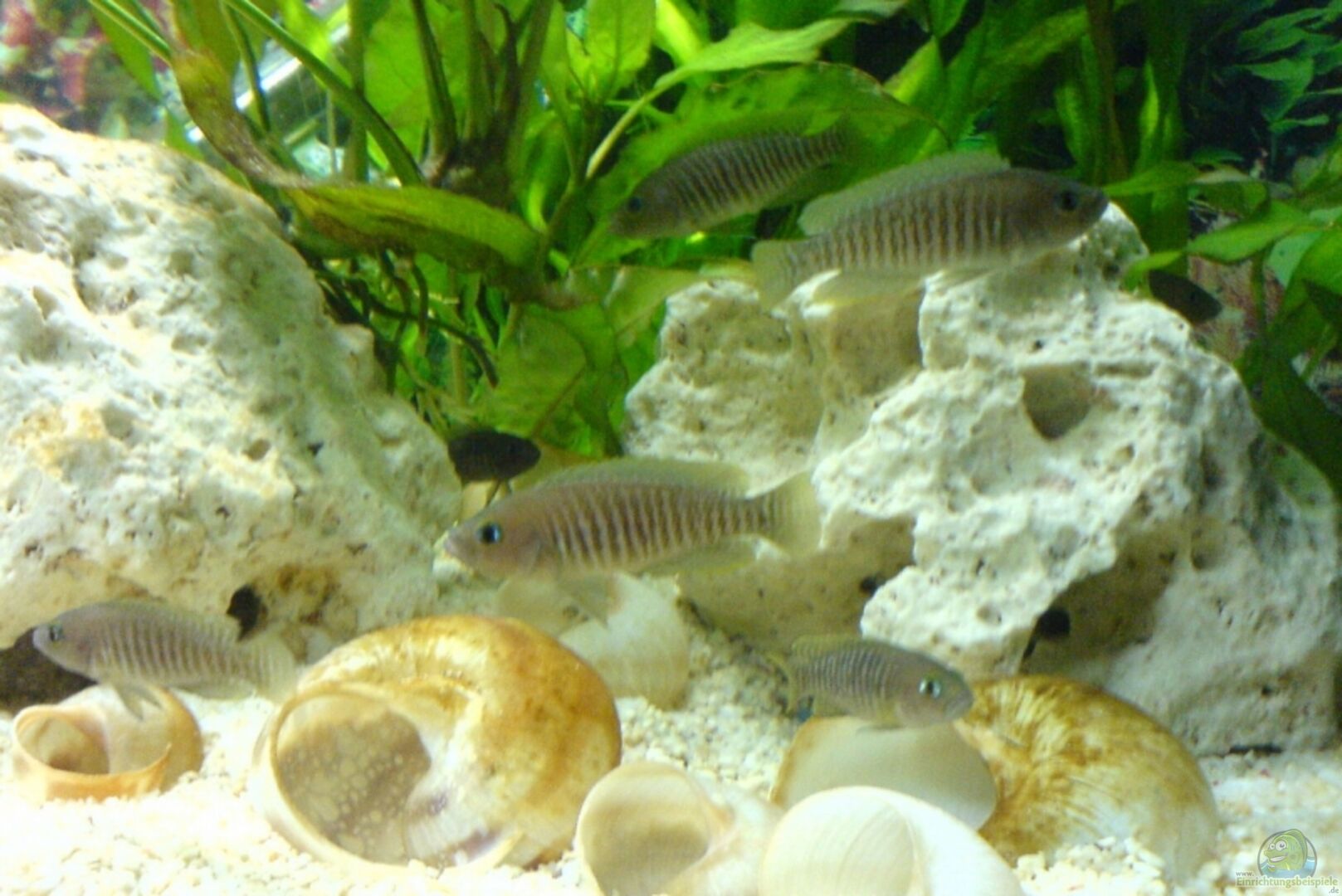 6 x Neolamprologus multifasciatus - 2 Männchen - 4 Weibchen (bitte nicht gleich schlecht Bewerten, die 6 Zwerge sind zwar ausgewachsen, kennen sich aber schon länger. Kleine Reibereien lassen sich natürlich nicht vermeiden. Sind halt doch Barsche ;-)
