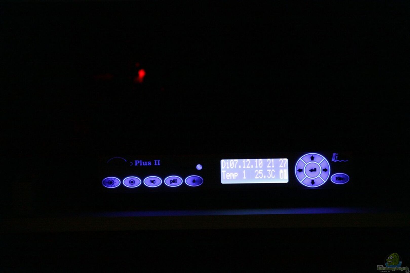 GHL Profilux Plus II GHL Leuchtbalken, getrennt dimmbar, 2 x 80 W GHL Profilux Simu-L Stab GHL Temperatursensor GHL STDL-4D Steckdosenleiste JUMO ph-Glaselektrode kompatibel mit Profilux Temperatur und pH-Wert werden an der Wasseroberfläche hinter der Rückwand gemessen. Tunze Turbelle nanostream 6055, 1000-5500 l/h, wird über Profilux Plus II gesteuert.Nachtreduzierung, sowie volle Leistung bei Gewitter. Schego Titan Heizer 300 W gesteuert über GHL STDL-4D Steckdosenleiste Hydor [...]