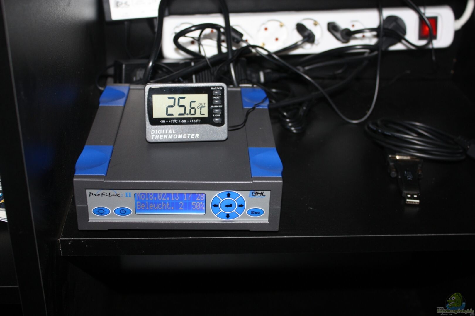 2x Tunze Turbelle Nanostream 6045 für Aquarien von 40 bis ca. 500L Strömungsleistung: 1.500 bis ca. 4.500l/h Energieverbrauch: 5 - 7W Spannung / Frequenz: 230V/50Hz (115V/60Hz) Kabellänge: 2m Ma??e: ø70, Aussto??: ø40/15mm Magnet Holder mit Silence Klemme bis 12 mm Glasstärke Beide Pumpen laufen auf voller Leistung. EIne ist rechts im Becken angebracht und durchströmt die untere Beckenhälfte und zwar entgegen der Oberflächenströmung, welche durch den Filterauslass [...]