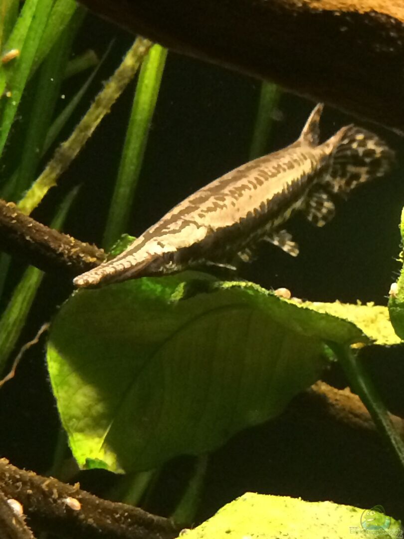 3x Gefleckter Knochenhecht Lepisosteus oculatus Grö??e ca. 13-15 cm Geschlechter wohl 1/2 (w/m). Ist in dem Alter noch schwer zu bestimmen. Aber einer wirkt etwas kräftiger und breiter. 1x Neolamprologus pulcher (sucht noch ein neues Zuhause) Ca. 20-50 Endeler Guppy Mix (je nach Appetit der Knochenhechte). Werden regelmä??ig aus eigener explodierender Zucht nachgefüllt oder vermehren sich selber im Becken. Wer einmal Guppies hatte wei?? wovon ich reden, der Millionenfisch. 1x [...]