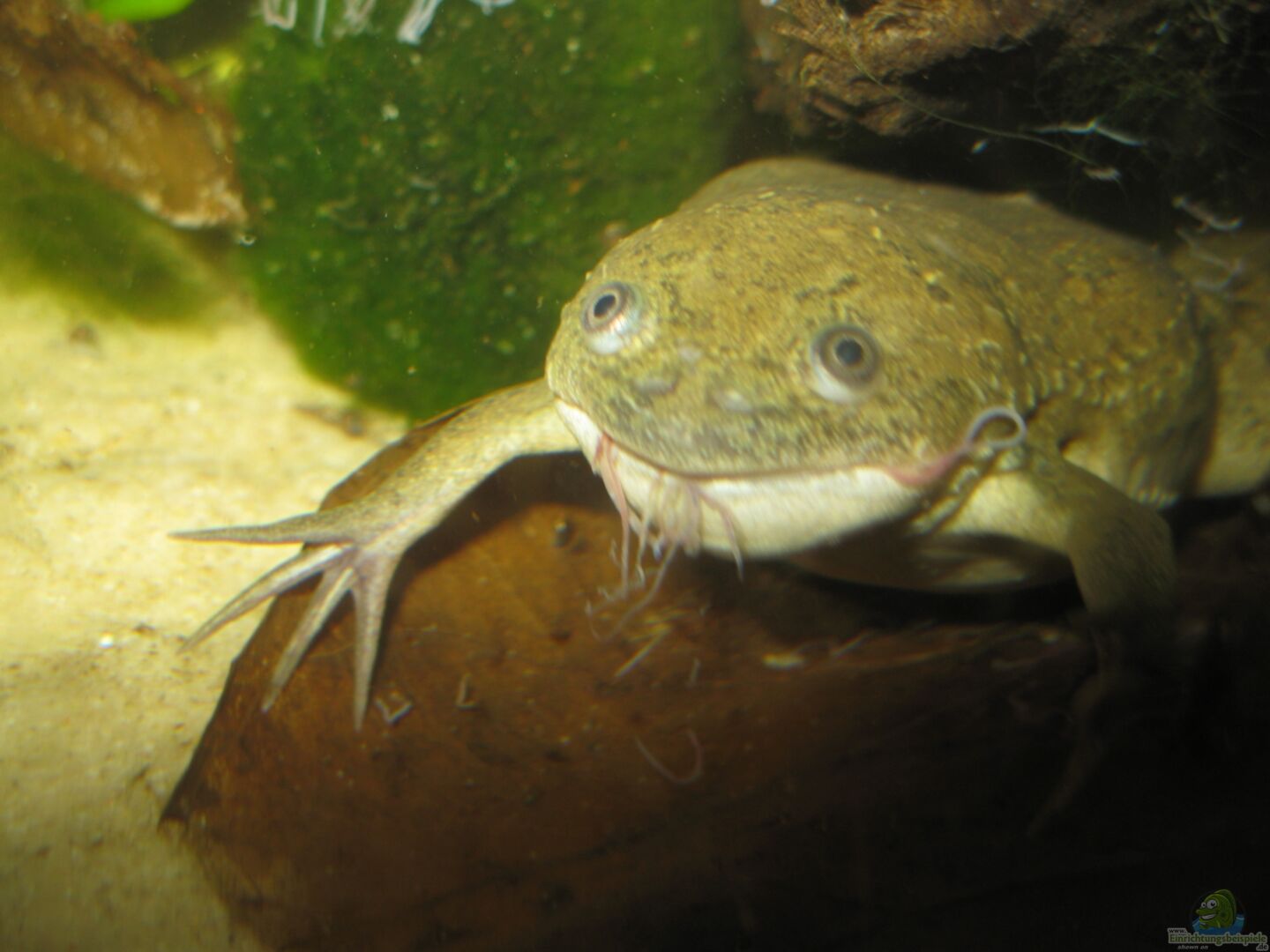 Xenopus laevis, 4 Weibchen 1 weiblicher Naturfarbender (Gitti), geboren wahrscheinlich im Sommer 2012, eingezogen am 20.04.2013, in tierärztlicher Behandlung wegen im Bein eingelagerter Lymphflüssigkeit im August 2014 (tägliche Bäder in isotonischer Kochsalzlösung) - seit Anfang 2015 symptomfrei 1 weiblicher Naturfarbender (Happy), geboren 2013, eingezogen 28.12.2014 1 weiblicher Naturfarbender (Louanne), geboren 2013, eingezogen am 28.12.2014 1 weiblicher Albino (Gemma), geboren [...]