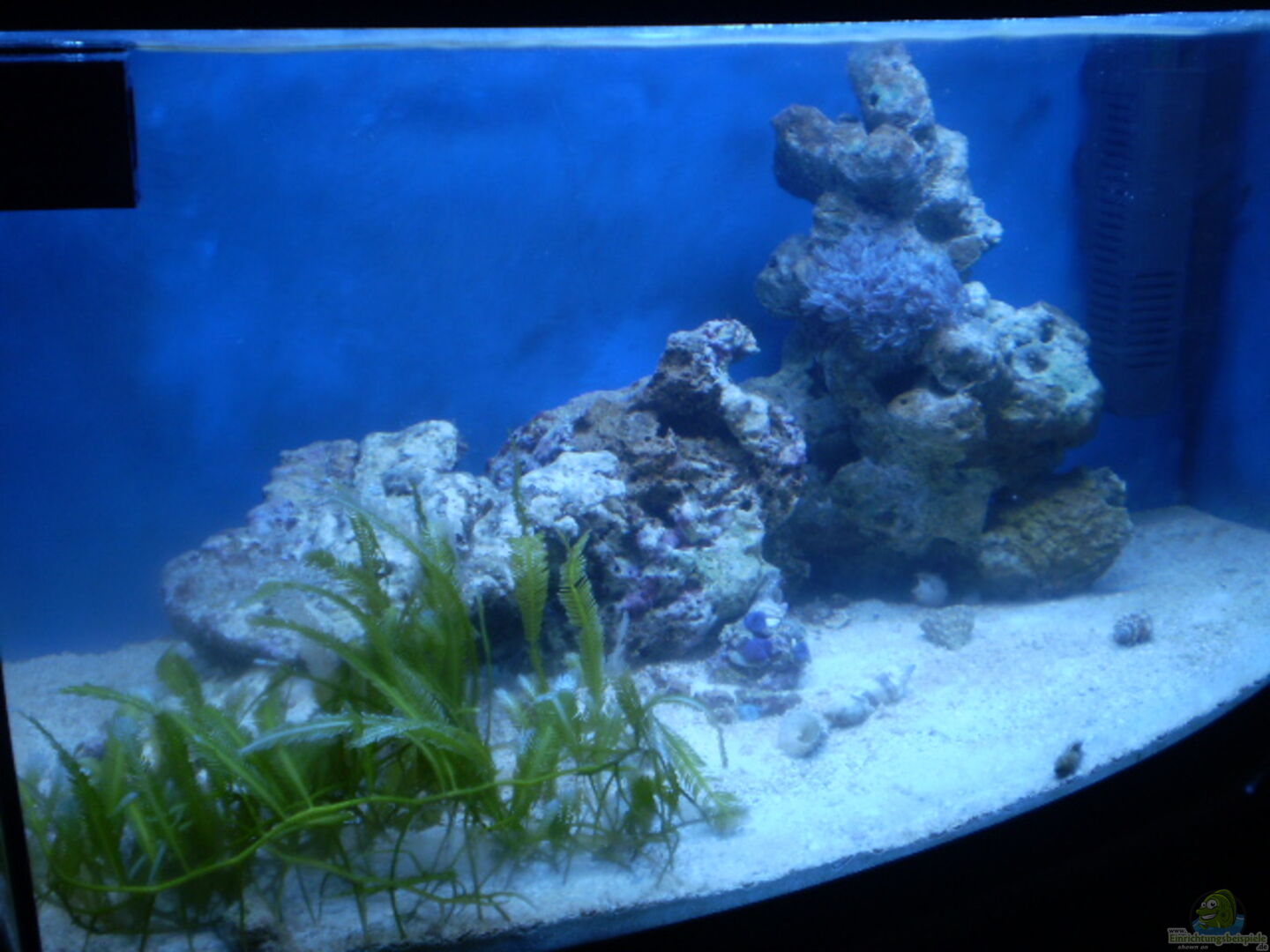 - Becken mit gebogener Frontscheibe, deshalb die unterschiedlichen Breiteangaben. - Die Rückwand und die rechte Seitenscheibe ist mit einer dunkelblauen Folie beklebt worden. - Plexigla??bodenplatte zum Schutz vor Gla??bruch - Plexigla??abdeckscheibe