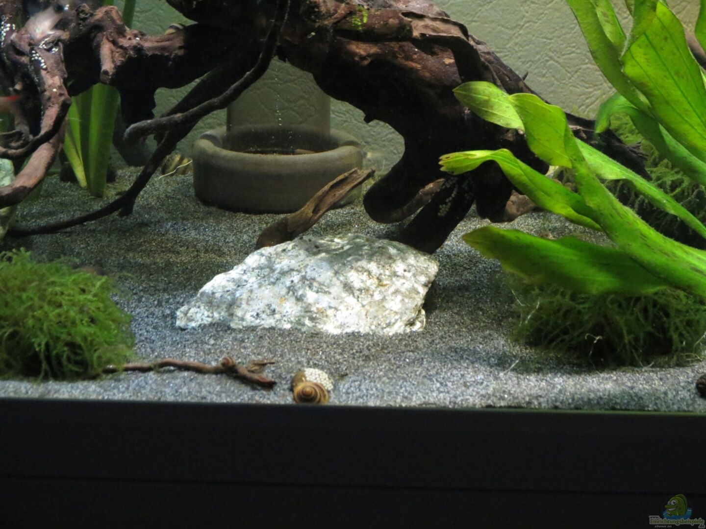 6x Rote Moorwurzeln 3x Steine (nicht Wasseraufhärtend) vom Gletscher mitgebracht. 1 Stein aus einem Bergbach (nicht Wasseraufhärtend) (Wasserhärte Beeinflussung mit Essigessenz getestet) 03.08.16 : Wurzeln haben sich mit Wasser voll gesogen. Sandsteine aus dem Aquarium entfernt und dafür die Steine aus den Bergen eingebracht. Zusätzlich noch 2 Kokosnusshälften am Boden versteckt, damit die Bodenfische noch ein wenig mehr die Möglichkeit zum Rückzug haben.