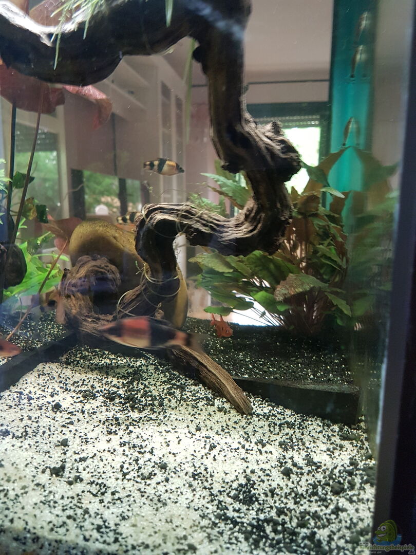 1x Garra cambodgiensis 16x Glühkohlenbarbe, Barbus fasciatus 1x Schachbrettschmerle, Yasuhikotakia sidthimunki 11x Armano Garnelen 7x Corydoras trilineatus 5x Phantomsalmler 5x Otohyropsis piribebuy LG2 Negro 5x Crossocheilus reticulatus (Schwanzfleck-Algenfresser)