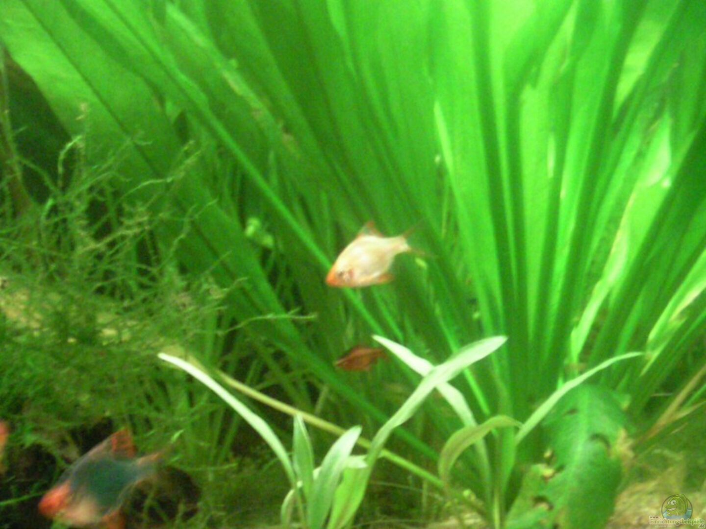 2 Blaue Antennenharnischwelse (Ancistrus spec.) Herkunft: Südamerika 1 Netzschmerle (Botia almorhae) Herkunft: Pakistan, Indien, Bangladesch und Nepal 14 Sumatrabarben / Viergürtelbarbe (Barbus tetrazona) 1 Moosbarbe 1 Goldbarbe Herkunft: Südostasien 1 Feuerschwanz-Fransenlipper (Epalzeorhynchos bicolor) Herkunft: Zentralthailand