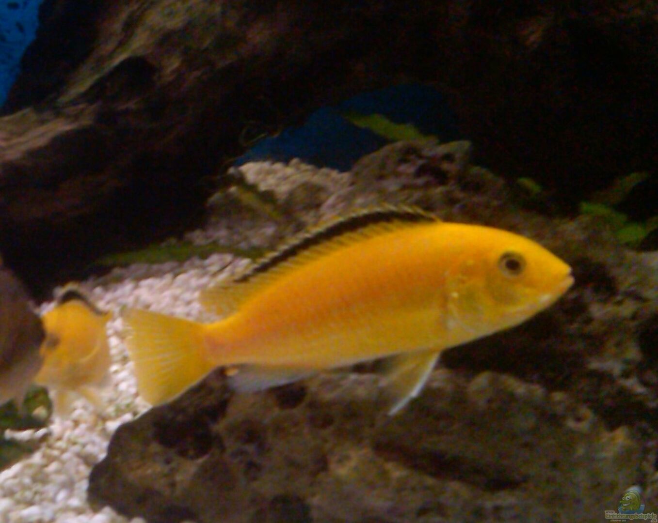 Goldener Labidochromis Labidochromis caeruleus (ca. 30 Junfisch) Die Heimat dieses Buntbarsches ist der nördliche Teil des Malawisees, wo sein Vorkommen auf die Umgebung von Nkhata Bay (Nordwestküste) und Lions Cave begrenzt ist. Die Tiere leben dort meist in 15 bis 25 m Tiefe und besiedeln felsige Bereiche. Beide Geschlechter werden bis zu 10 cm lang und sind nur schwer zu unterscheiden. Die Männchen tragen aber oft mehr schwarze Pigmente in der Afterflosse und haben leuchtendere Farben, [...]