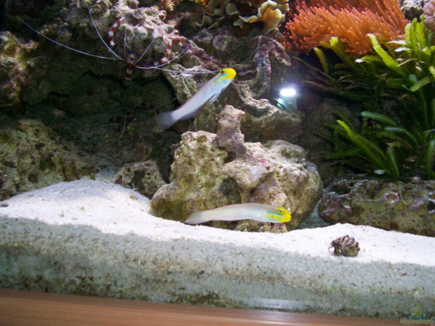 2x Valenciennea strigata - Goldstirn-Schläfergrundel 4x Chrysiptera parasema - Gelbschwanzdemoiselle 5x Chromis atripectoralis - Schwarzachsel-Schwalbenschwänzchen 2x falsche Clownfische 1x Acreichthys tomentosus - Seegras- oder Tangfeilenfisch 1x Diadema setosum - Diadem Seeigel 1x Echinometra mathaei - Riffdach Bohrseeigel ca. 30 Einsiedler ca 15 Schnecken Anemonia cf. manjano - Feueranemone Entacmaea quadricolor - Blasenanemone Clavularia viridis - Grüne Röhrenkoralle Discosoma [...]