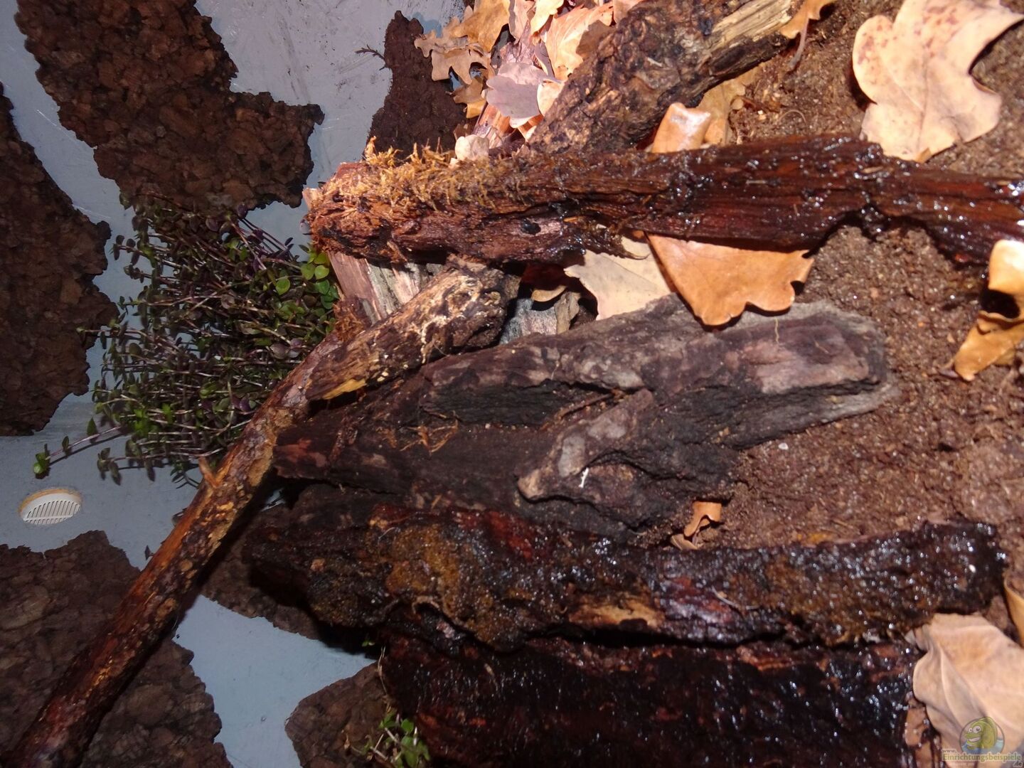 Da die Gro??kröten auch Gro??grabamaschinen sind, ist es nicht so ganz einfach mit der Bepflanzung. Um den Kosten-Nutzen-Faktor möglichst günstig zu halten, habe ich mich für 4 Callisia repens entschieden, da diese relativ pflegeleicht, überall erhältlich und billig in der meist nötigen Neubeschaffung sind. Die Flora spielt nicht eine spezifische Rolle, sondern dient nur der Gewissensberuhigung der Halterin, weil Pflanzen als allgemein nett anzusehen gelten:)