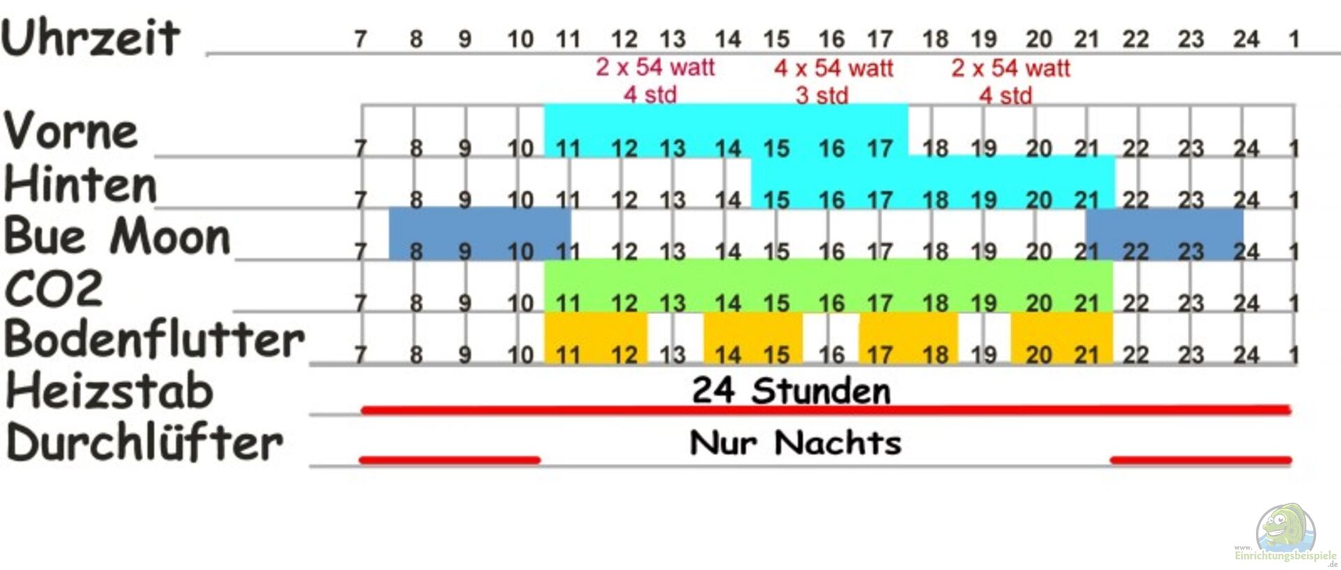 Osmose Pro Line 150 von Aquamedic, mit Aktivkohlevorfilter, Schwebstoffvorfilter und Umkehrosmosemodul aus Polyamid / Polysulfon 150 l Tagesleistung Uv Wasserklärer Uvc 18 watt über Aussenfilter Digitaler PH Controltester Aquadesign mit Dupla PH-elektrode und über magnetventil Co2 steuerung mit Flipper zum auströmen. Digitalen Eheim Thermometer mit Fühler im Becken ist 1/2 Grad niedriger eingestellt als der Bodenflutter damit eine Filterung des Bodens gewährleistet ist. CO2 Langzeittest [...]