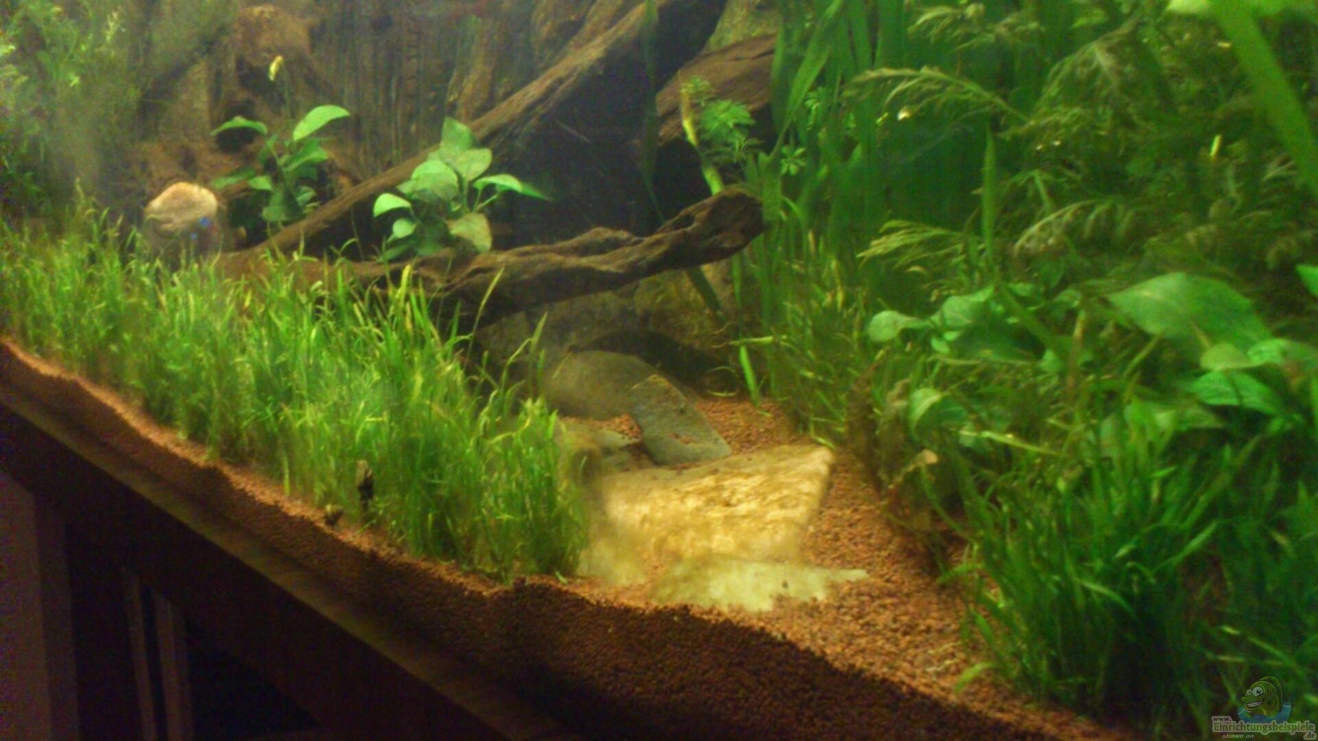 2x gro??e Mangrovenhölzer ca. 5KG pro Stk. 1x kleines Mangrovenholz ca. 1KG Strukturrückwand (Hersteller ist mir leider nicht bekannt) Ausserdem finden sich ca. 10 gro??e Kiesbrocken im Becken wieder, welche als Unterteilung dienen. Durch diese Unterteilung ist es mir möglich, einen Bereich zu schaffen, indem die tiefwurzelnden Pflanzen die Möglichkeit haben sich vollkommen zu entfalten. Durch die Abtrennung der Steine, rutscht der Kies nicht in den flach aufgeschütteten Kiesbereich. [...]