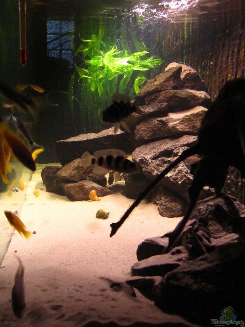 Die Steinaufbauten aus Mendiger-Basalt wurden natürlich bevor der Sand ins Becken gekommen ist aufgebaut, damit durch grabende Fische kein rutschen der Steinaufbauten verursacht wird!Es sind ca.65 kg Basaltsteine und zahlreiche ander Steine verwendet worden! Die Strukturrückwand von Juwel wurde ganz am Anfang an die Rückscheibe mit Silikon angeklebt um ein späteres aufsteigen zu vermeiden, da die platten einen sehr starken Auftrieb haben! In der linken Aquariumhälfte wurden ca. 120 [...]