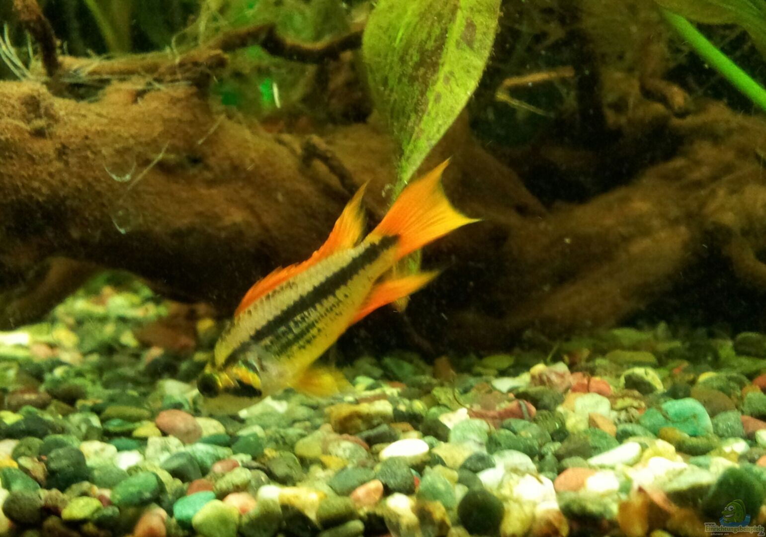 Fische: 2 (m/w) Ringelhechtlinge 7 Glühlichtsalmler 5 Sternflecksalmler 2 (w/m) Kakaduzwergbuntbarsch 2 LDA 67 2 (w) roter Hexenwels 3 Ohrgitterharnischwelse (werden nicht mehr aufgestockt) Wirbellose: 9 Geweihschnecken Hinweis: Ich wei??, dass die beiden Salmlerarten jeweils im Schwarm gehalten werden müssten. Die Glühlichter genie??en ihre Rente. Später sollen dann die Sternflecksalmler auf 10 oder 12 aufgestockt werden.