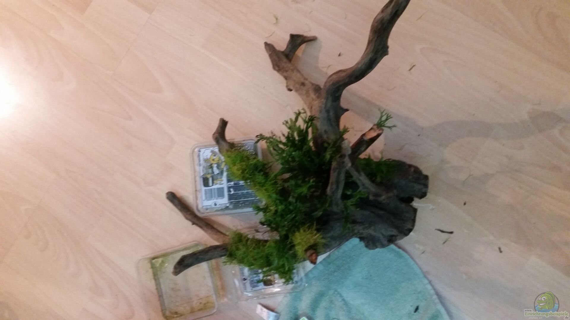 5 Vulkansteine Dekorationskrug mit Led-Beleuchtung ( 22.02.2016 wurde der Krug herausgenommen) Gro??e Wurzel auf die ich Javafarn und Moos gebunden habe ( Die Wurzel wurde mit einer Steimplatte, die auf die Unterseite der Wurzel befestigt wurde, beschwert. Sie wollte nicht aufhören zu schwimmen und ich war ungeduldig) Juwel 3D Rückwand