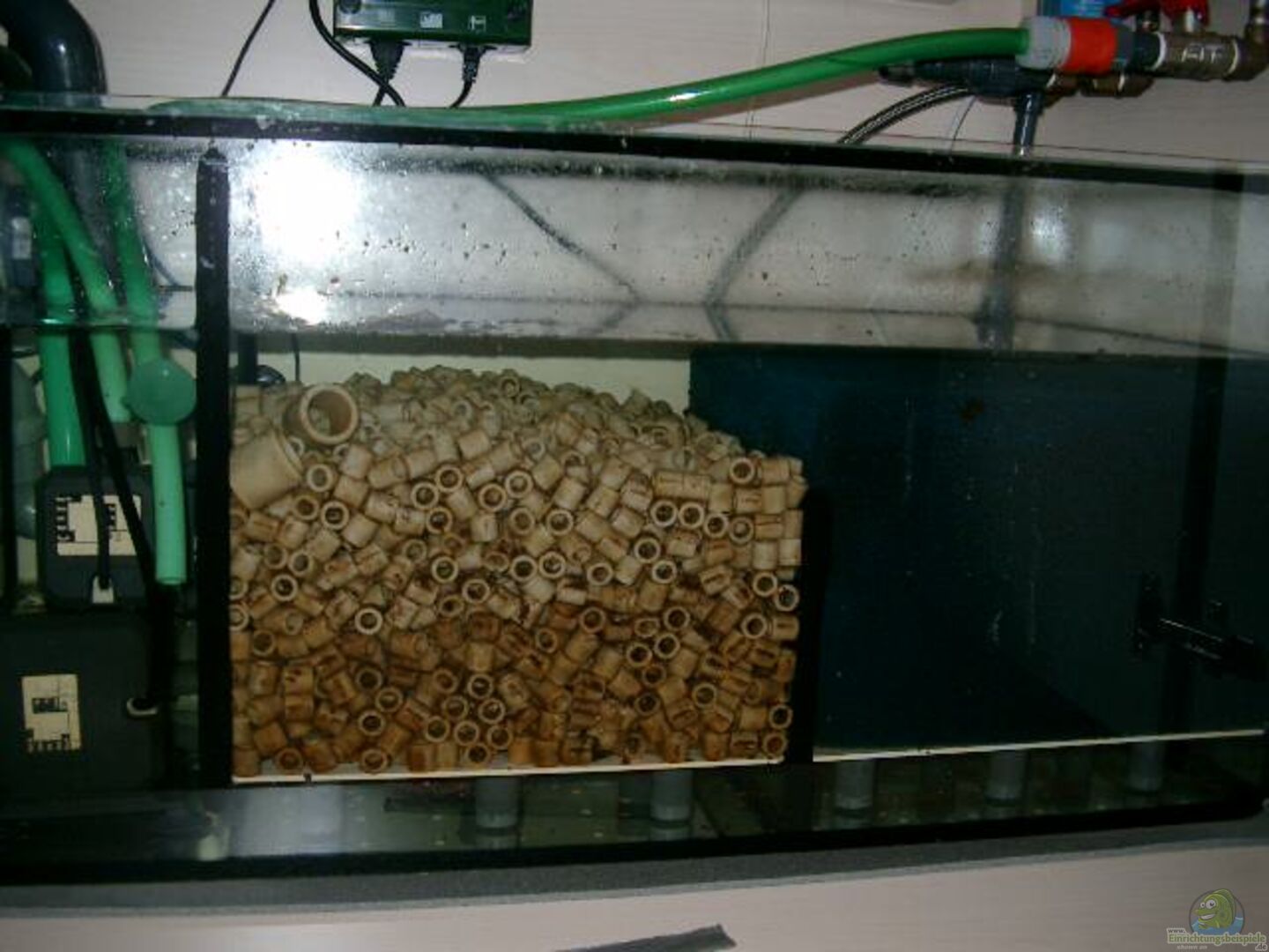Weitere kleinere Eheimpumpe die das gefilterte Wasser zusätzlich noch durch eine UV Lampe pumpt. Dennerle Duomat steuert die Bodenheizung und den zusätzlichen 300 Watt Heizstab. C02 Anlage ebenfalls von Dennerle über Digitalessteuergerät mit zusätzlicher Nachtabschaltung. Automatischer Wasserwechsel jeweils Mittwochs und Sonntags ca. 150 ltr.