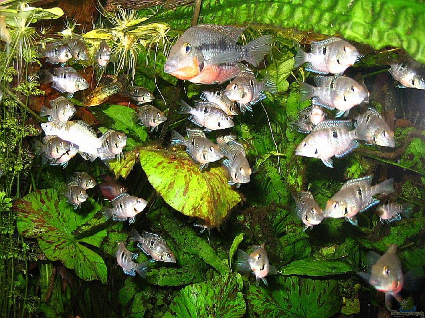 2 Paare Thorichthys meeki und noch 3 Jungtiere 5 ´Cichlasoma´ sajica noch halbwüchsig 3/2 noch keine Paarbildung erkennbar ca. 18 Black Mollymischlinge in allen Farbschlägen 2 Antennewlse 2 L200 15 marmorierte Panzerwelse