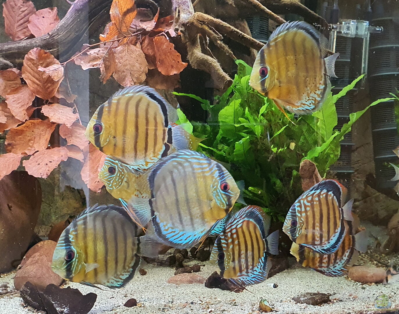 11 x Symphysodon aequifasciatus, Diskus Téfe red spotted grün F1 (seit 07/19) und grüne Wildfänge aus dem Rio Jutai (seit 01/20) 4 x Mikrogeophagus sp. 'Zweifleck' F1 aus dem RIO Guapore - Seit 05/19 im Becken 8 x Maroni-Buntbarsch (Cleithracara maronii) F1 - Seit 12/20 im Becken 20 x Corydoras adolfoi WF - Seit 05/19 im Becken 4 x Hypancistrus sp. "L333" - Seit 05/19 im Becken 40 x Hemigrammus bleheri - Seit 01/20 im Becken