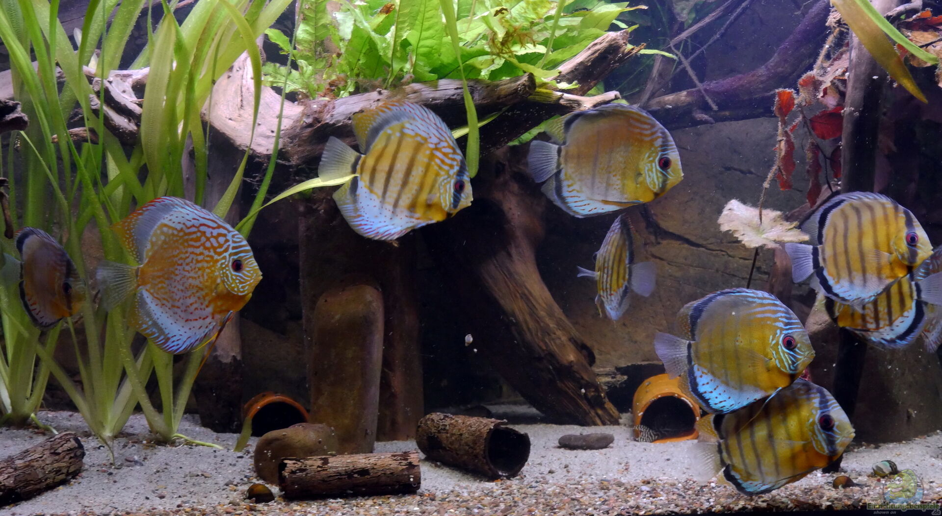 11 x Symphysodon aequifasciatus, Diskus Téfe red spotted grün F1 (seit 07/19) und grüne Wildfänge aus dem Rio Jutai (seit 01/20) 4 x Mikrogeophagus sp. 'Zweifleck' F1 aus dem RIO Guapore - Seit 05/19 im Becken 8 x Maroni-Buntbarsch (Cleithracara maronii) F1 - Seit 12/20 im Becken 20 x Corydoras adolfoi WF - Seit 05/19 im Becken 4 x Hypancistrus sp. "L333" - Seit 05/19 im Becken 40 x Hemigrammus bleheri - Seit 01/20 im Becken