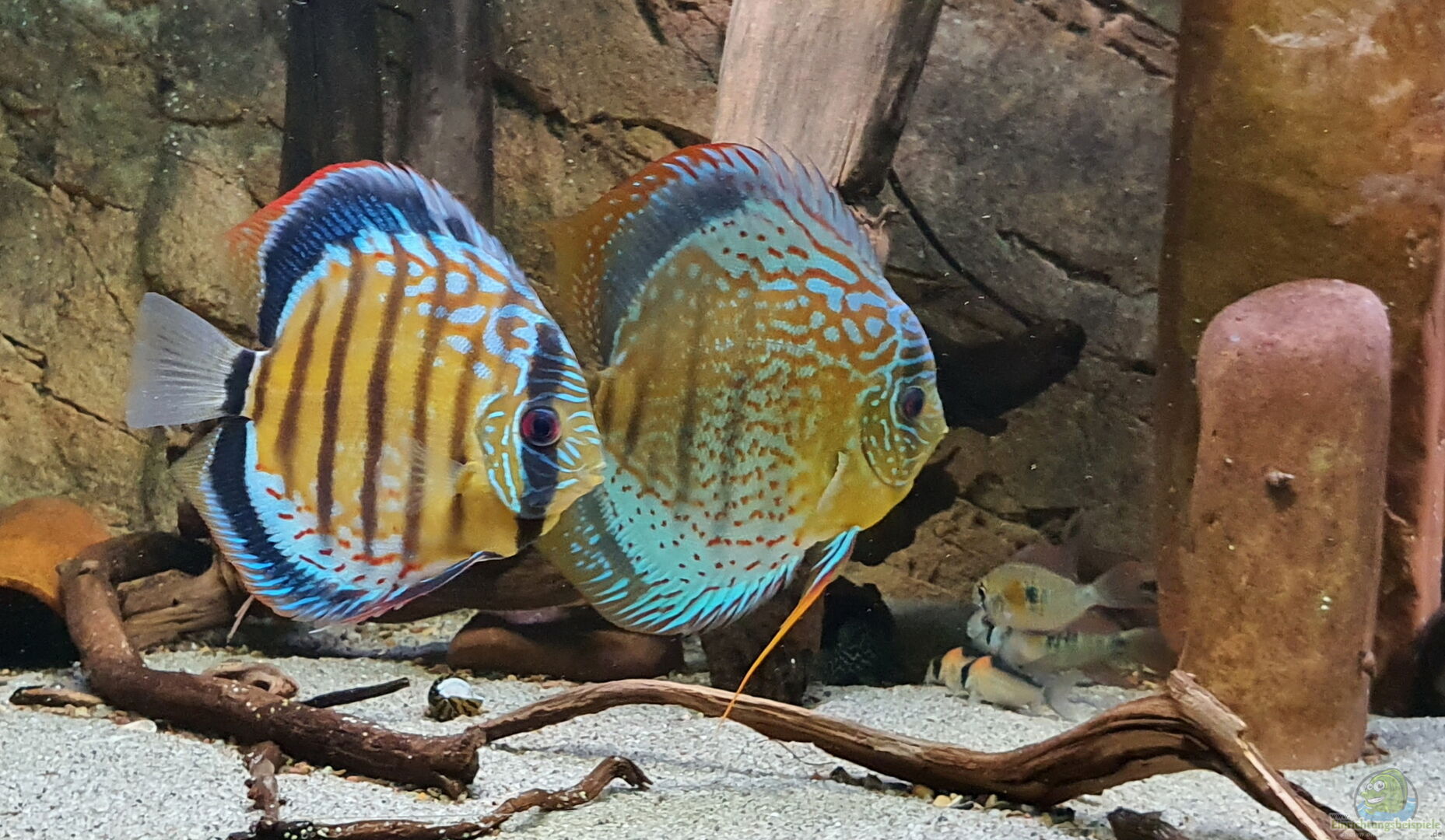 11 x Symphysodon aequifasciatus, Diskus Téfe red spotted grün F1 (seit 07/19) und grüne Wildfänge aus dem Rio Jutai (seit 01/20) 4 x Mikrogeophagus sp. 'Zweifleck' F1 aus dem RIO Guapore - Seit 05/19 im Becken 8 x Maroni-Buntbarsch (Cleithracara maronii) F1 - Seit 12/20 im Becken 20 x Corydoras adolfoi WF - Seit 05/19 im Becken 4 x Hypancistrus sp. "L333" - Seit 05/19 im Becken 40 x Hemigrammus bleheri - Seit 01/20 im Becken