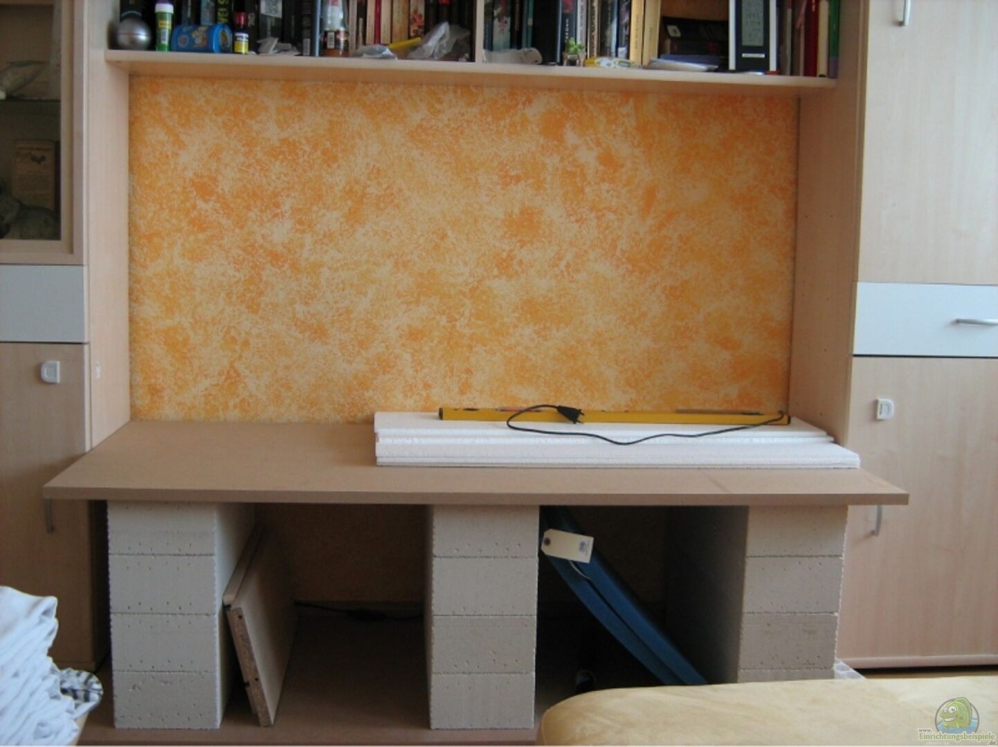Das Becken wurde aus 8mm Glas gefertigt und die Bodenplatte hat 10 mm, es ist Wulst verklebt mit einer Sicherheitsnaht. Die Abdeckung ist aus stabilen Kuststoff und mit Glasplatten unterlegt. Das Becken steht auf 3 Säulen aus Ytong Steinen vorauf eine 22 mm MDF Platte liegt und natürlich eine Sicherheitsunterlage.
