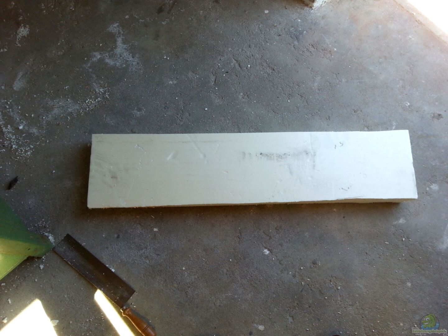 Rückwände: Im Becken ist im Submersen Teil eine geteilte Mangrovenrückwand angebracht. Im emersen Teil habe ich eine Rückwand gebaut welche ständig von oben mit Wasser überlaufen wird. Die Rückwand besteht aus Styropor und Styrodur. Anfangs habe ich eine grobe Struktur geschaffen und diese verklebt. Danach würde das ganze etwas "angesenkt" um weitere Struktur zu schaffen. Dann habe ich alles mit Gewebematten belegt um anschliessend Gewebespachtel gemischt mit Abtönfarbe [...]