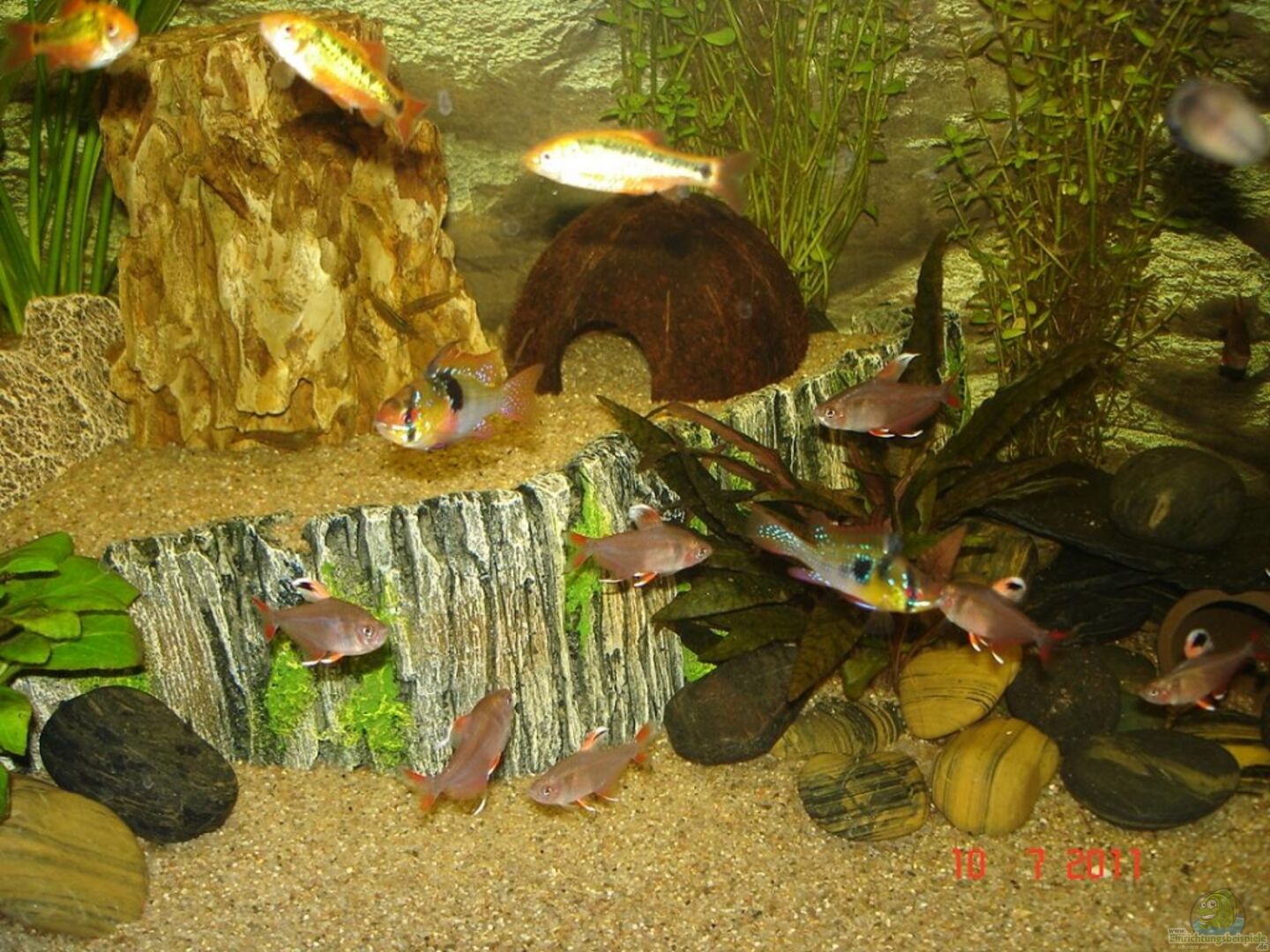 UPDATE - 16.07.2011 Am Besatz selber hat sich nichts geändert. Jedoch hierzu einige Erläuterungen: Durch mangelnde Informationsbeschaffung meinerseits, wurden bei meinem Erstbesatz sowohl Kalt- und Warmwasserfische angeschafft. Daher fahre beim Becken bzgl. der Temperatur zur Zeit einen Kompromiss - 26/27° C. Zur Zeit scheinen sie auch gut mit den gegebenheiten klar zu kommen...zumindest lässt dies ihr Verhalten ableiten (kein wenig Scheu, sehr aktiv, viel Appetit und keinerlei Anzeichen [...]