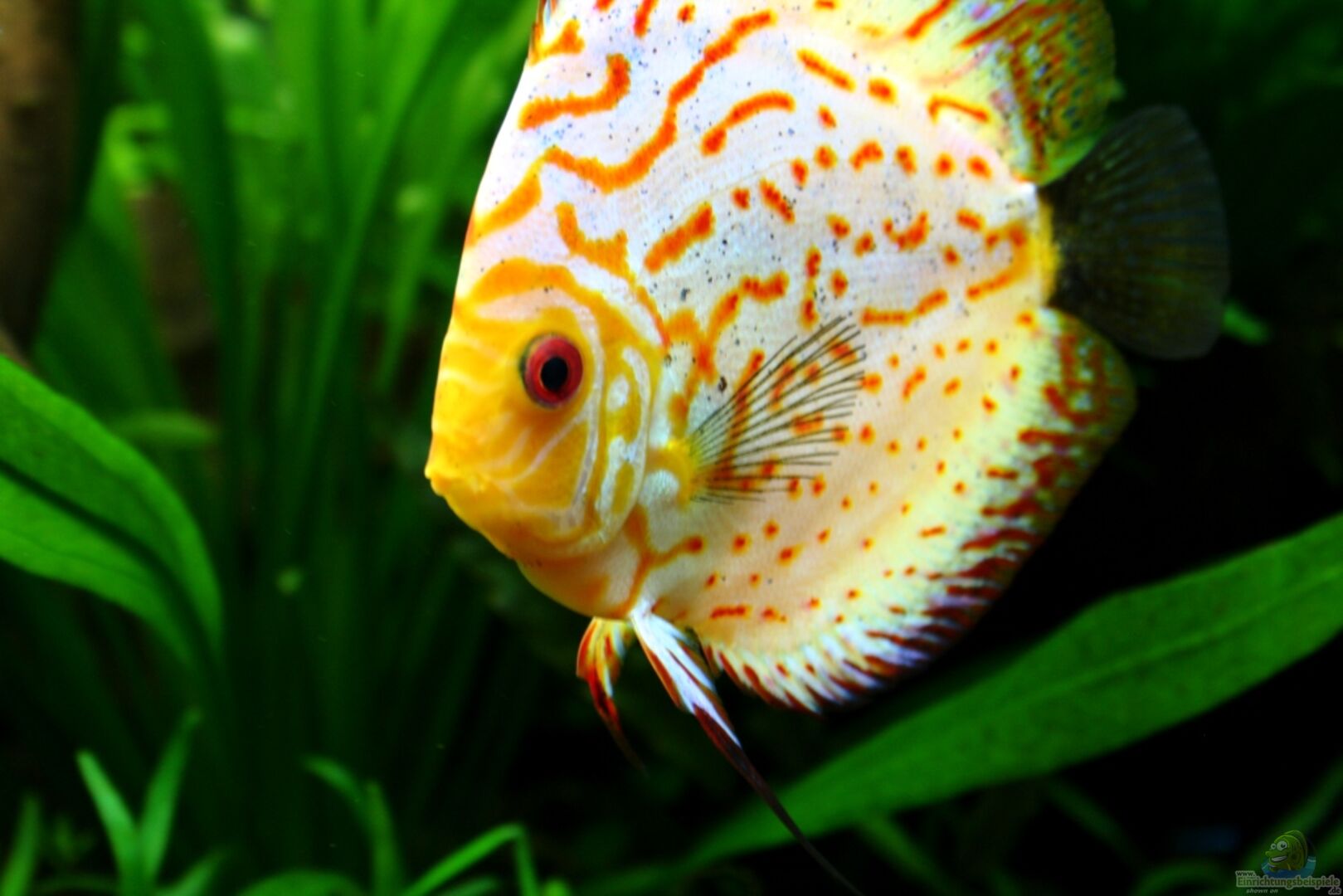 5 Disken (Symphysodon aequifasciatus) 2 x Pigeon blood blau, 1 x Santarem, 2 x Rot-Türkis Herkunft: Südamerika Grösse: 15 - 20 cm (im Durchmesser) Haltung: in Gruppen (5-8 Tiere) Wassertemperatur: 26 - 30°C Wasserwerte: GH 0-30, KH 0-25, PH-Wert 4, 0-8, 3 (diese Werte gelten nur für Stendker-Diskus, da die Tiere in diesem Wasser aufwachsen) (Quelle: Diskuszucht Stendker.de) Futter: Diskus-Spezial-Trockenfutter, Frostfutter (Mückenlarven, Artemia, Tubifex), Lebendfutter [...]
