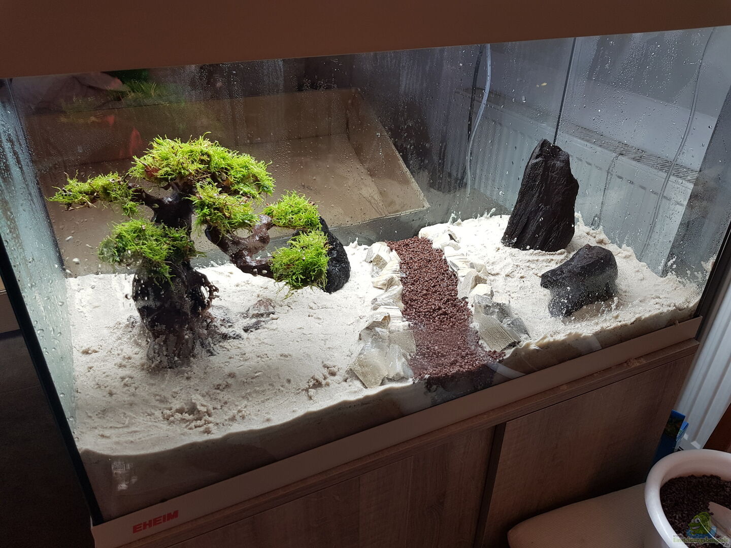1. Versteinertes Holz 2. Bonsai (mit Javamoos) 3. Sandwüstensteine (Wegbrenzung)