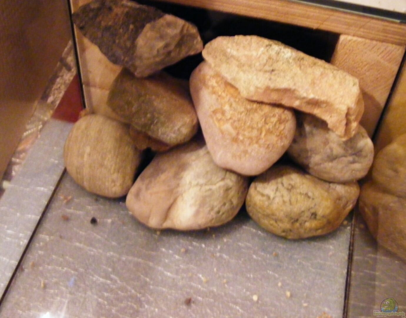 Oberes Becken mit Rückwandmodul ´Aqua-Pro´, innen hohl als gro??e Versteckmöglichkeit... Rotholzwurzel, Sumpfwurzelstamm.... Steine Unteres Becken selbstgebaute Reliefrückwand als ??bergang zum oberen Becken... gro??e Steine (grüner Granit)pH-neutral kleinere Steine Wurzelholzstücken Bambuszweige für ??stenachstellung