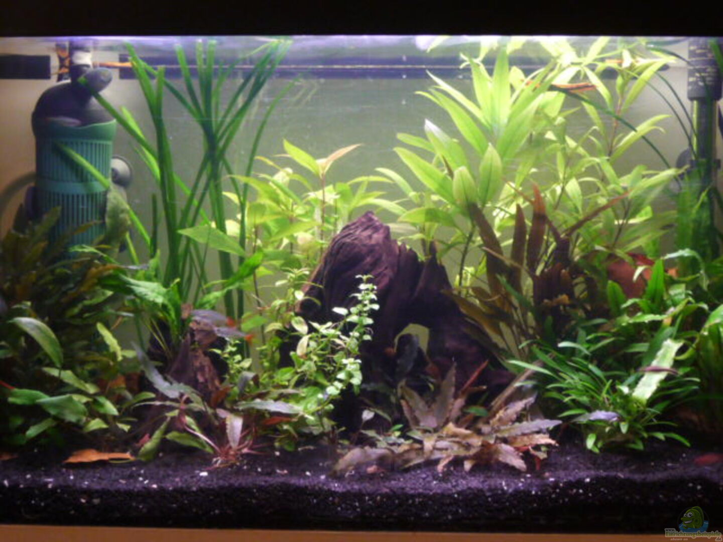 Lichtreflektor selbst zurechtgeschnitten aus Spiegelpapier (die Standartreflektoren waren nicht mehr zu gebrauchen). Auch bei diesem Becken wurde darauf geachtet, Pflanzen zu verwenden, die auch mit weniger Licht auskommen, trotz mehr Leuchtkraft durch 2 Röhren.